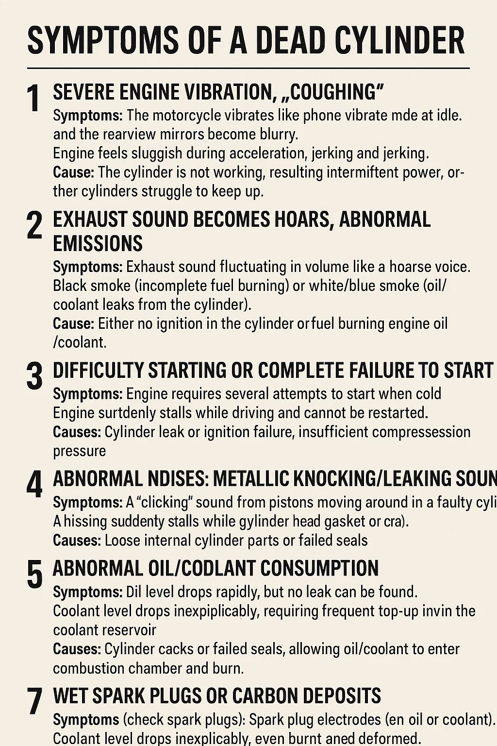 สาเหตุ: กระบอกสูบไม่ทำงานส่งผลให้กำลังขาดช่วง กระบอกสูบอื่นๆ กำลังดิ้นรนเพื่อตามทัน